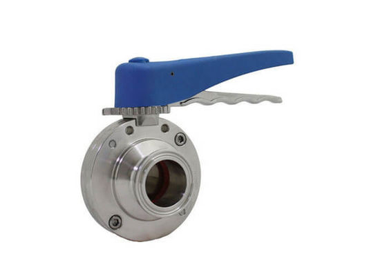 صمام فراشة غير قابل للصدأ للتحكم اليدوي في النهاية الصحية ، مواد معتمدة من إدارة الغذاء والدواء
